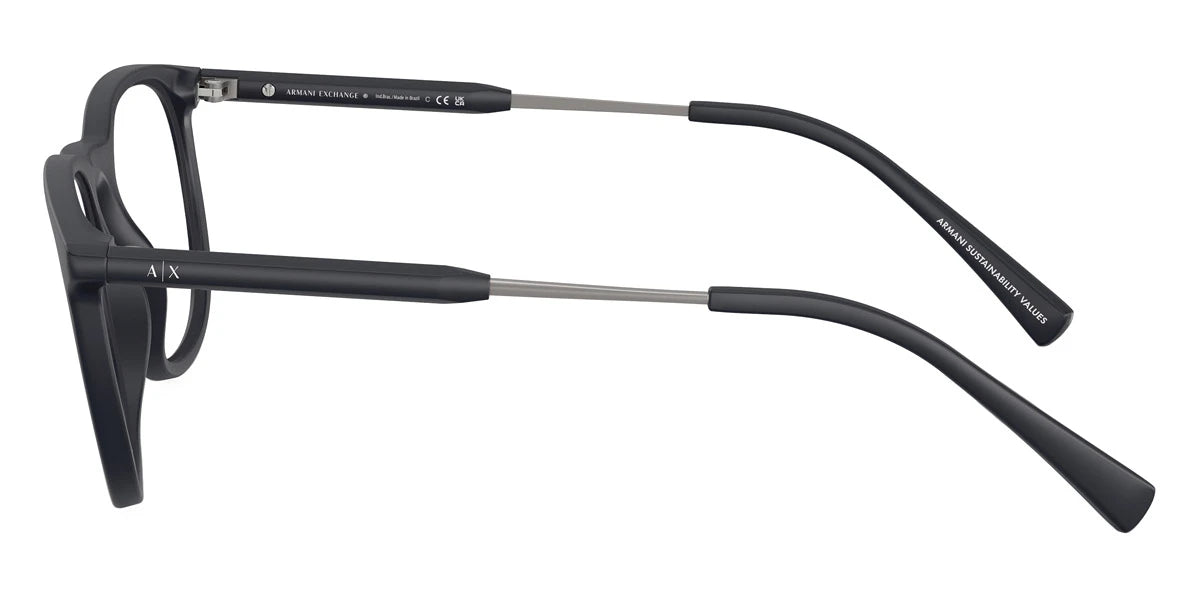 Matte Black (8078) Eyeglasses (AX3127 8078 52) by ARMANI EXCHANGE™. Size: 52-20-145, Shape: Wayfarer, Material: Injected and Metal.