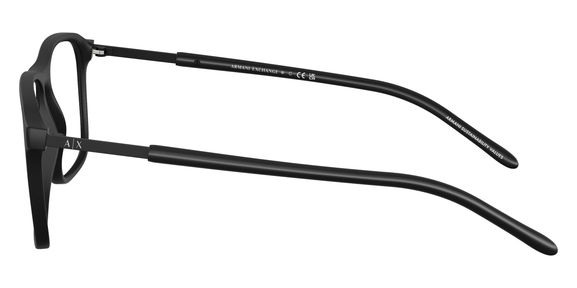 Matte Black (8078) Eyeglasses (AX3131 8078 54) by ARMANI EXCHANGE™. Size: 54-17-145, Shape: Irregular, Material: Injected and Metal.