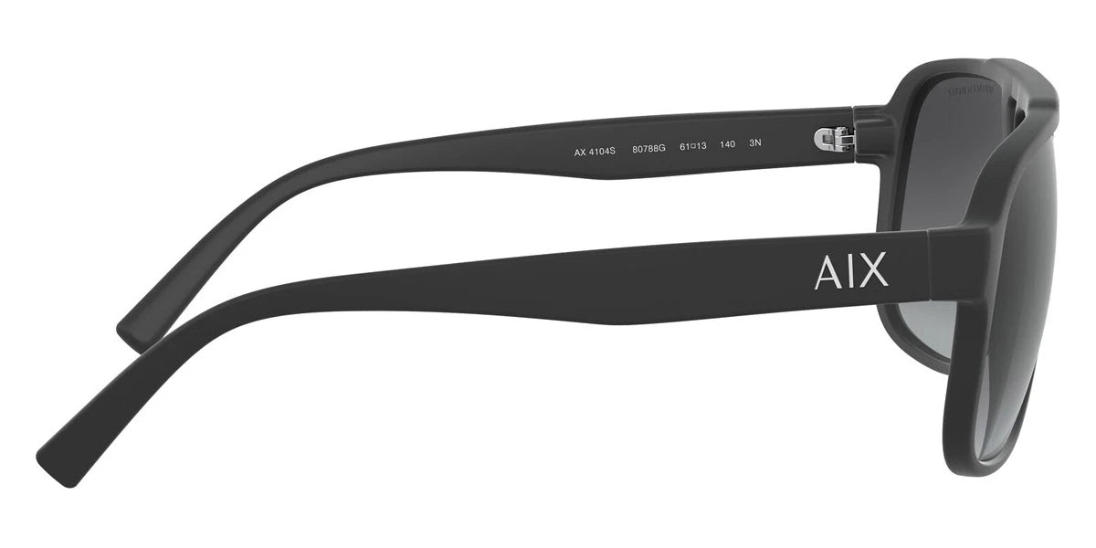 Matte Black (80788G) Sunglasses with Gradient Gray lenses (AX4104S 80788G 61) by ARMANI EXCHANGE™. Size: 61-13-140, Shape: Rectangle, Material: Plastic.