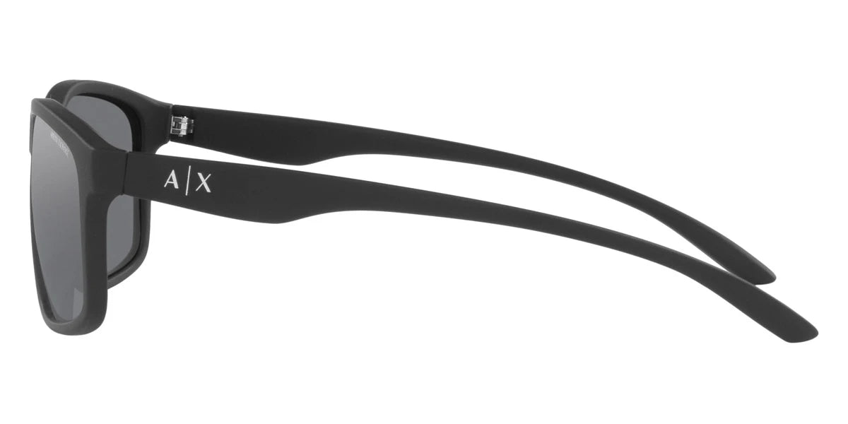 Matte Black (80786G) Sunglasses with Light Gray Mirrored Black lenses (AX4122S 80786G 59) by ARMANI EXCHANGE™. Size: 59-17-140, Shape: Square, Material: Plastic.