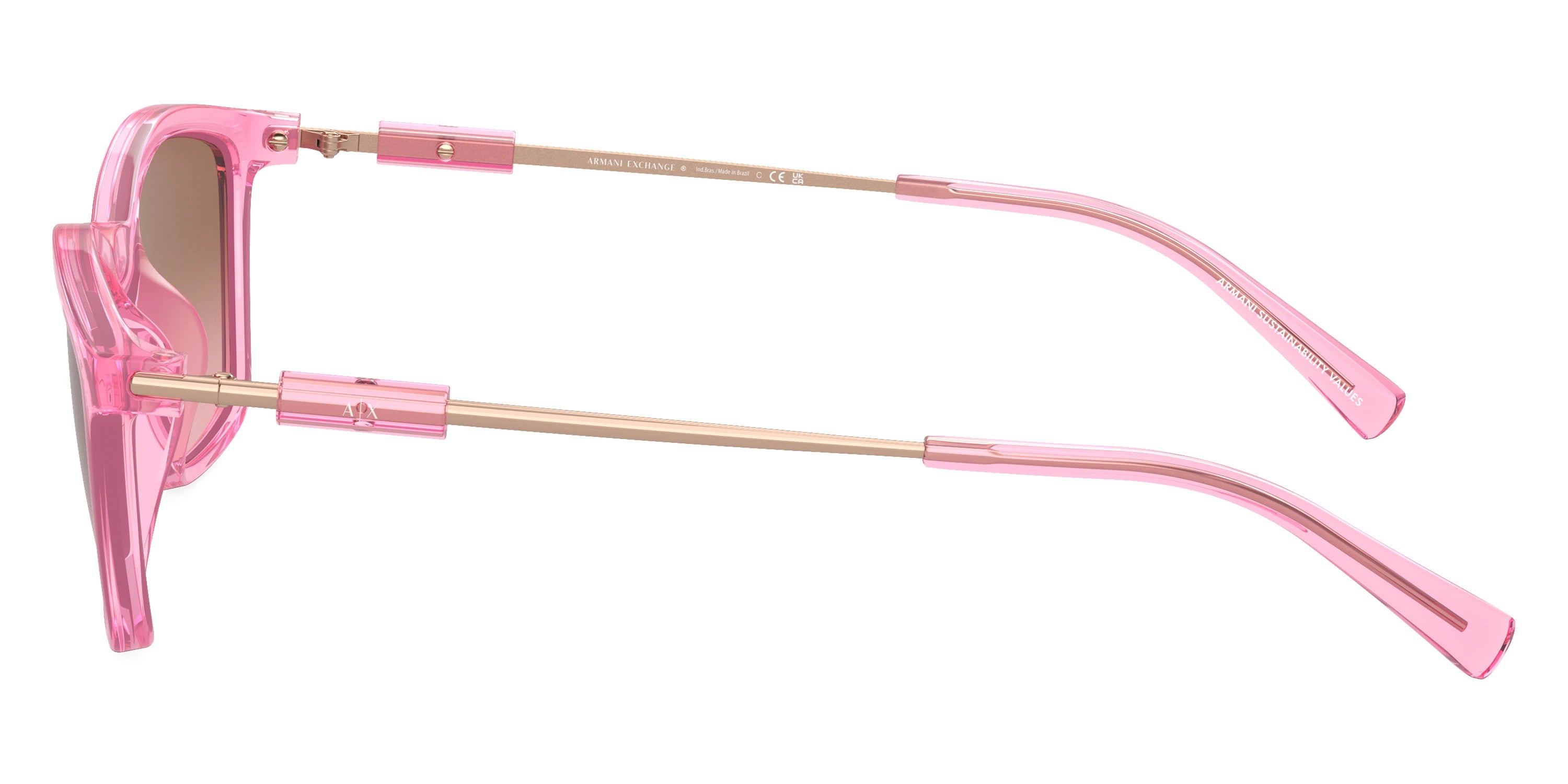 Watermelon/Shiny Rose Gold (835014) Sunglasses with Pink Gradient Brown lenses (AX4146SU 835014 53) by ARMANI EXCHANGE™. Size: 53-19-140, Shape: Irregular, Material: Injected and Metal.