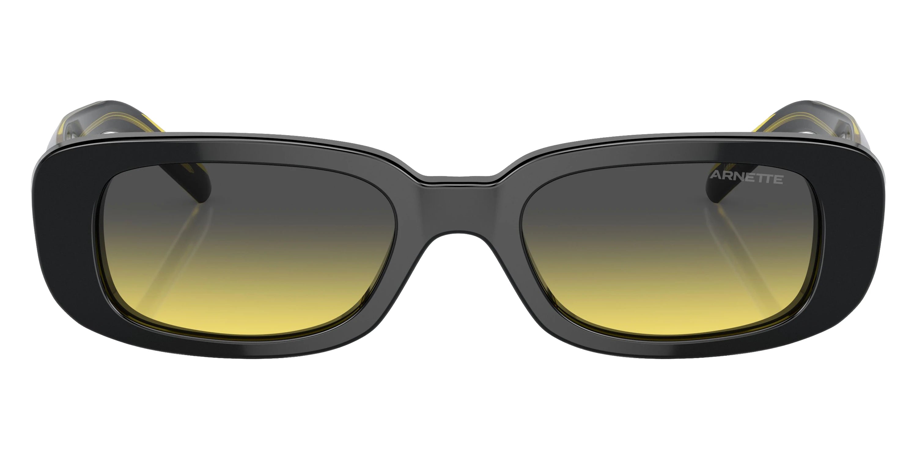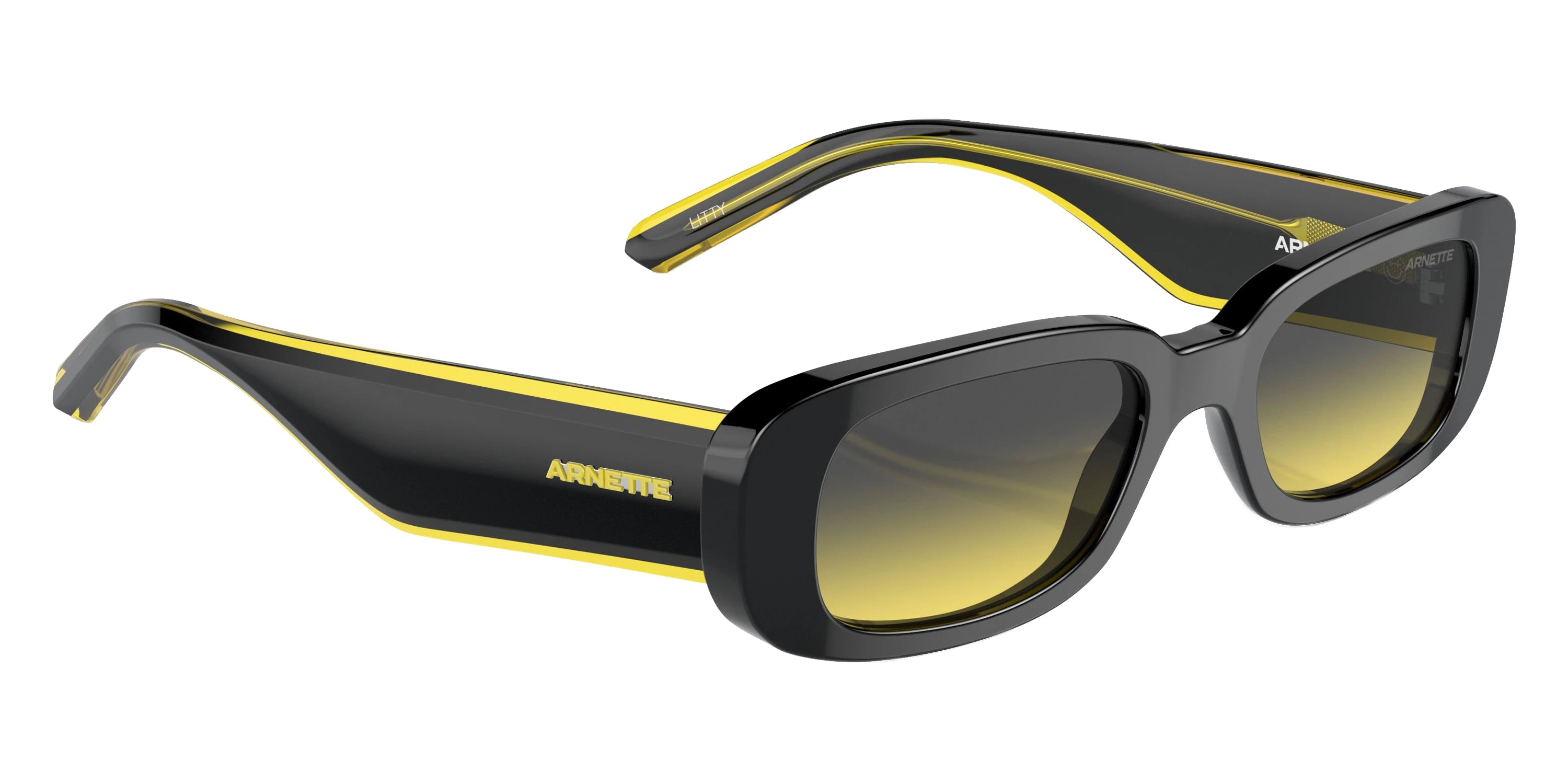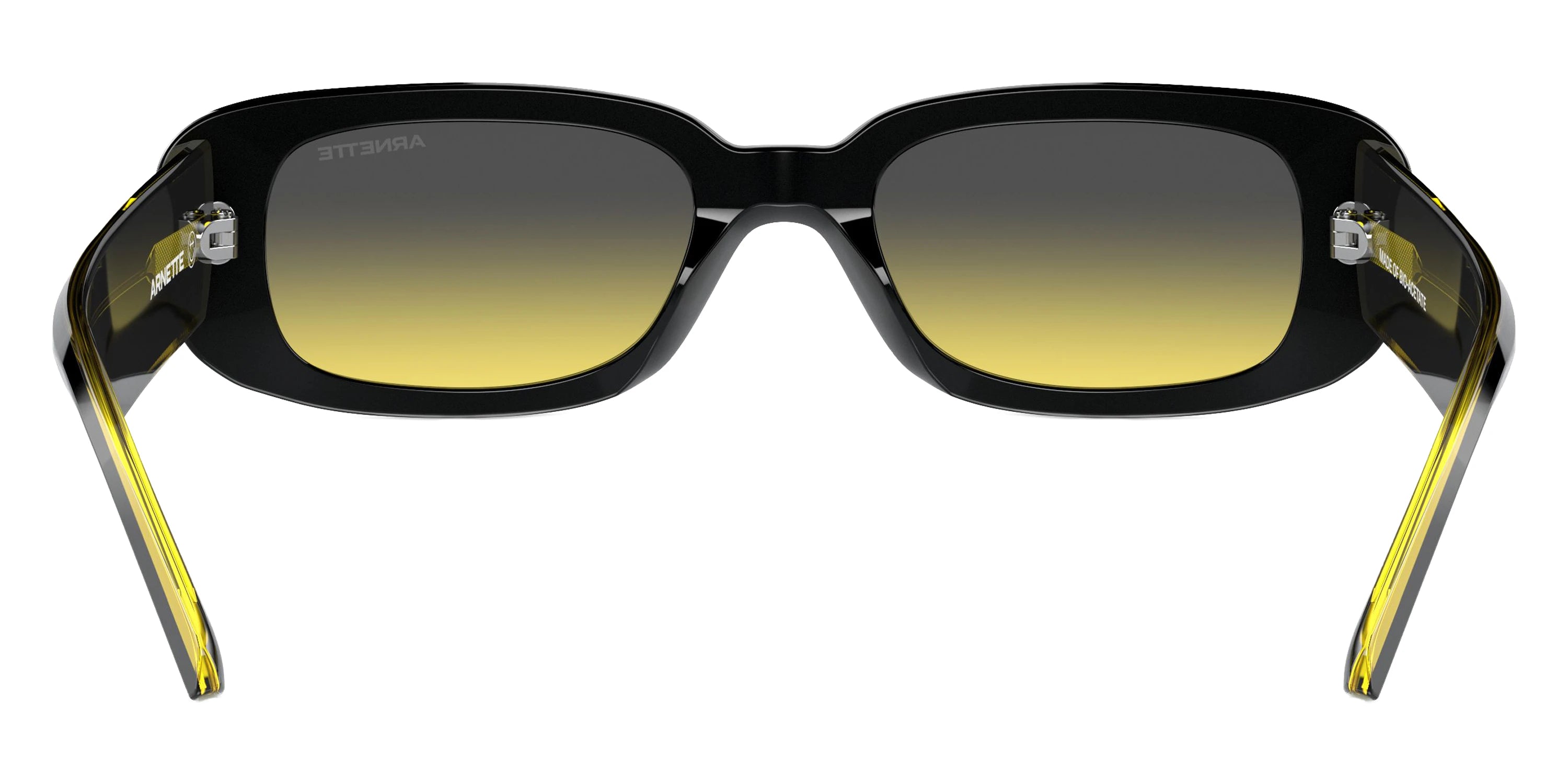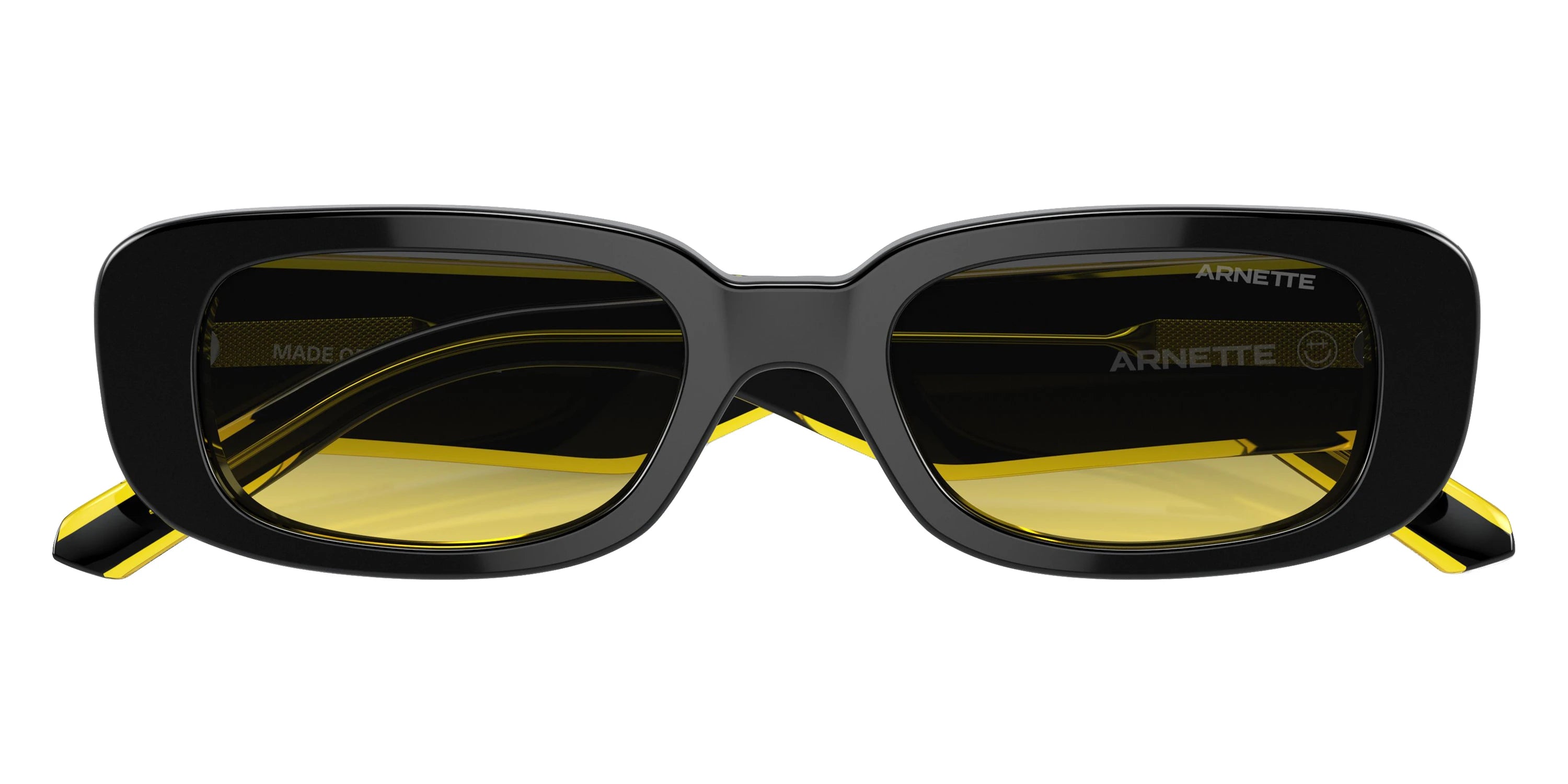 Black/Top Black/Yellow (12412Q) Sunglasses with Fifty Black/Yellow lenses (AN4317 Litty 12412Q 50) by ARNETTE™. Size: 50-19-145, Shape: Rectangle, Material: Acetate.