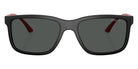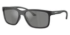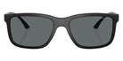 Black Matte/Shiny/Gray Matte (29919A) Sunglasses with Dark Green Polarized lenses (AN4359 Headlight 29919A 57) by ARNETTE™. Size: 57-18-140, Shape: Rectangle, Material: Injected.