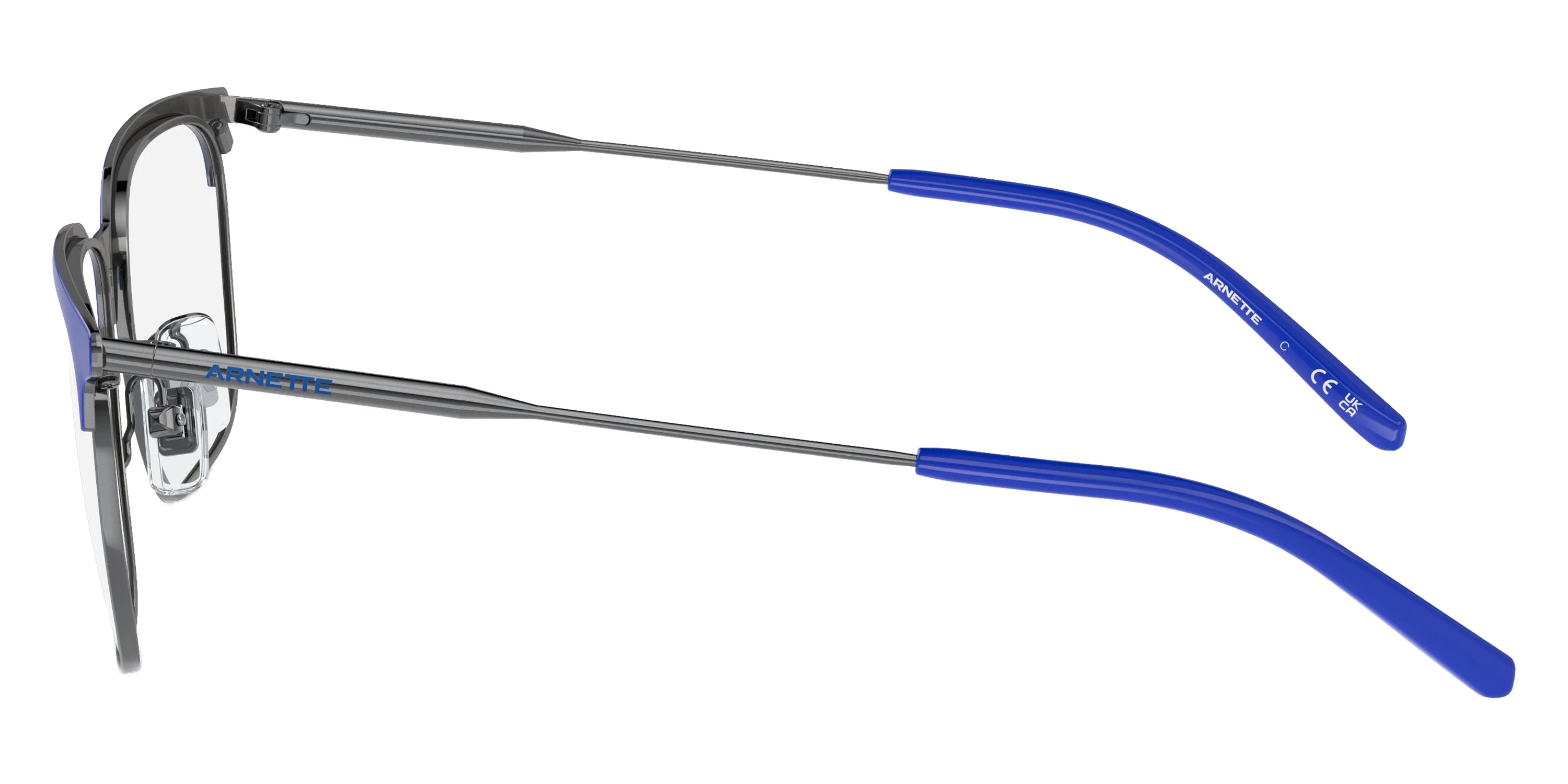 Royal Blue/Gunmetal (763) Eyeglasses (AN6136 Maybe Mae 763 53) by ARNETTE™. Size: 53-17-140, Shape: Rectangle, Material: Metal.