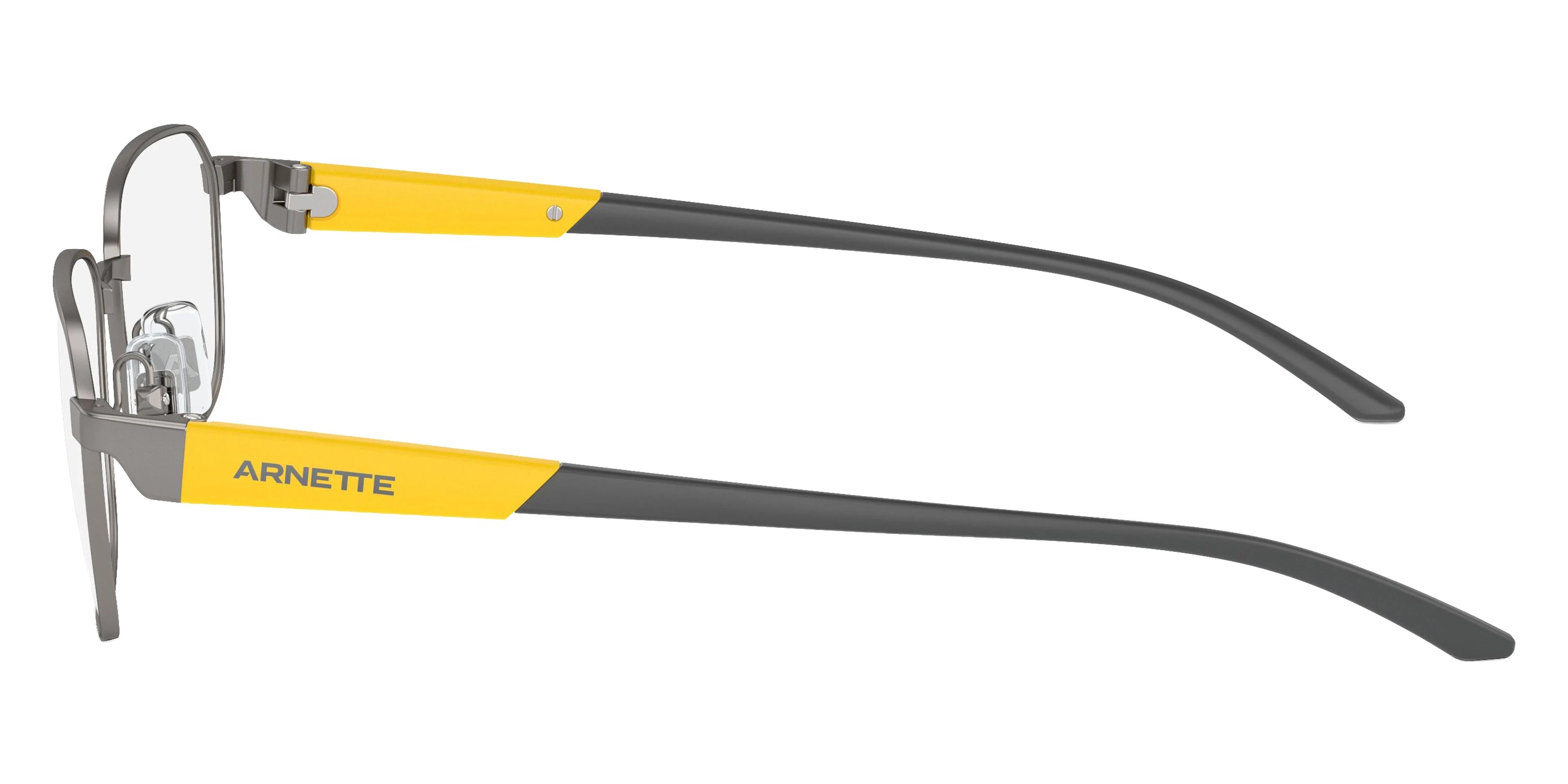Matte Gunmetal/Matte Yellow/Matte Dark Gray (745) Eyeglasses (AN6137 Kijimi 745 55) by ARNETTE™. Size: 55-17-140, Shape: Rectangle, Material: Metal and Injected.