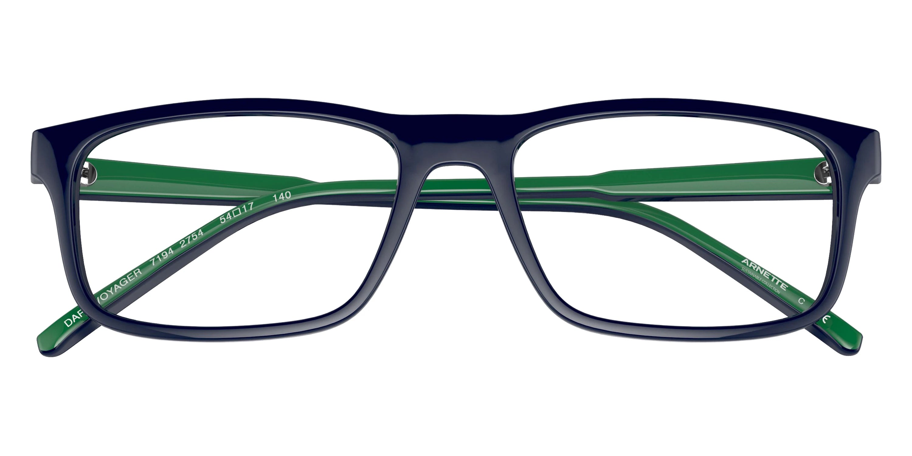 Navy Blue/Green (2754) Eyeglasses (AN7194 Dark Voyager 2754 52) by ARNETTE™. Size: 52-17-140, Shape: Square, Material: Injected.