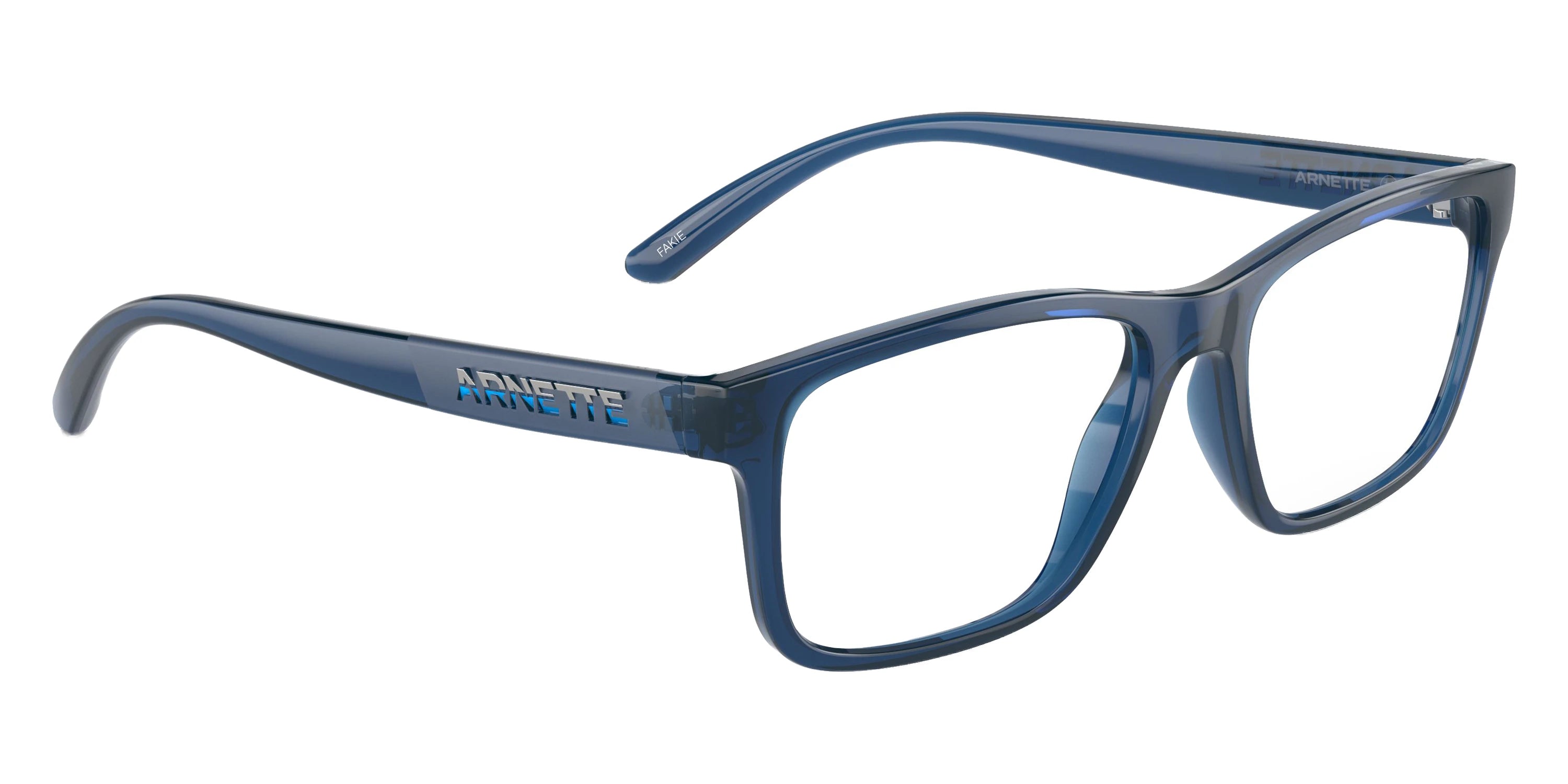 Transparent Blue (2873) Eyeglasses (AN7231 Fakie 2873 55) by ARNETTE™. Size: 55-17-145, Shape: Square, Material: Injected.