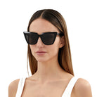 Black (001) Sunglasses with Gray lenses (BB0046S 001 55) by Balenciaga™. Size: 55-18-140, Shape: Cat-Eye, Material: Acetate.