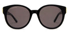 Black/Gold (001) Sunglasses with Gray lenses (BB0134SA 001 55) by Balenciaga™. Size: 55-20-145, Shape: Round, Material: Acetate.