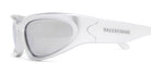 Blue (009) Sunglasses (BB0157S 009 65) by Balenciaga. Size: 65-17-125, Shape: Wrap, Material: Bio Injection.