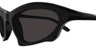 Black (001) Sunglasses with Gray lenses (Bat BB0229S 001 59) by Balenciaga™. Size: 59-20-125, Shape: Wrap, Material: Bio Injection.