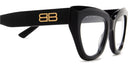 Black (001) Eyeglasses (BB0238O 001 50) by Balenciaga™. Size: 50-19-140, Shape: Cat-Eye, Material: Acetate.