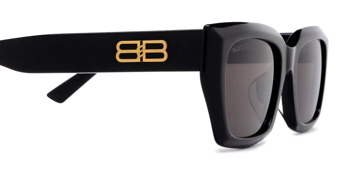 Black (001) Sunglasses with Gray lenses (BB0272SA 001 54) by Balenciaga™. Size: 54-19-145, Shape: Square, Material: Recycled Acetate.