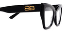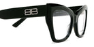 Black (001) Eyeglasses (BB0275O 001 53) by Balenciaga™. Size: 53-18-140, Shape: Cat-Eye, Material: Recycled Acetate.