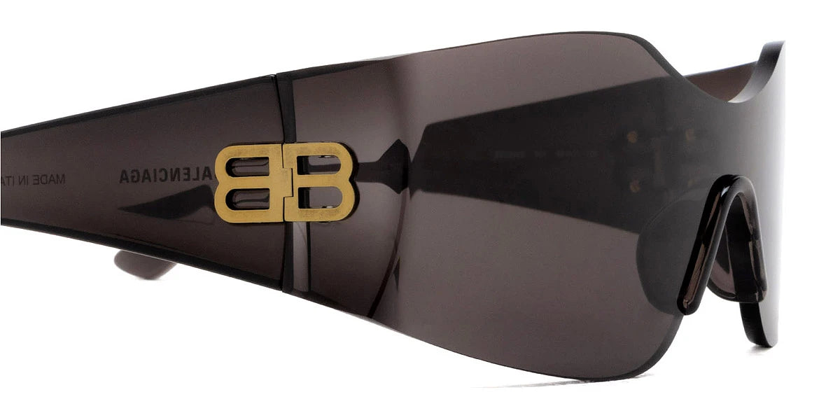 Gray (001) Sunglasses with Gray lenses (Hourglass BB0292S 001 99) by Balenciaga™. Size: 99-1-120, Shape: Shield, Material: Nylon.