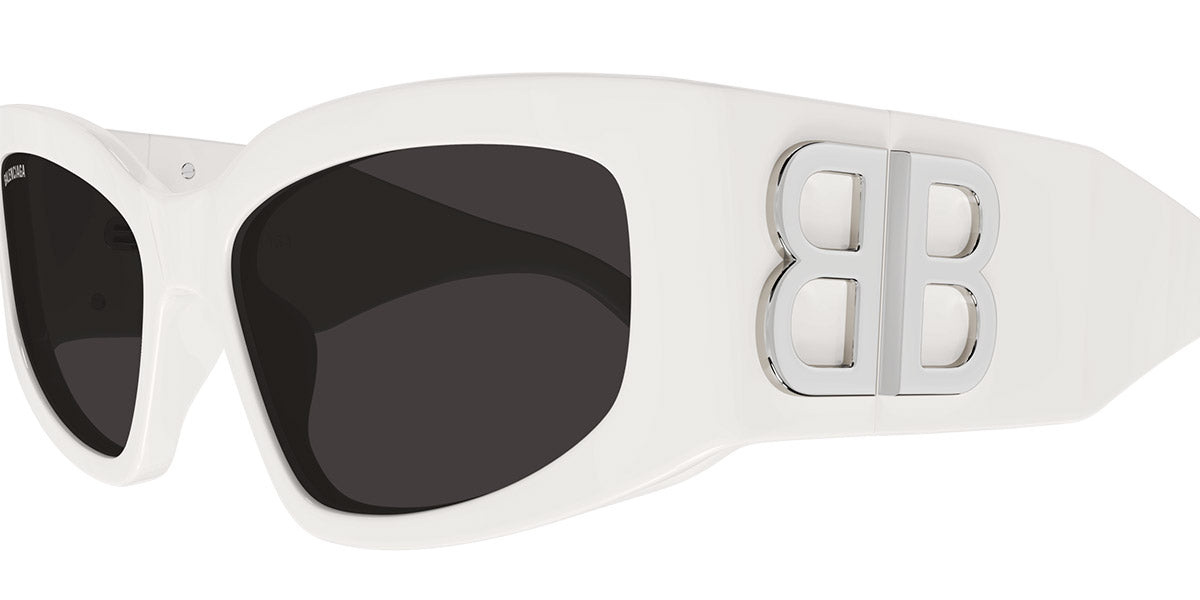 White (005) Sunglasses with Gray lenses (Bossy BB0321S 005 57) by Balenciaga™. Size: 57-17-125, Shape: Cat-Eye, Material: Recycled Acetate.