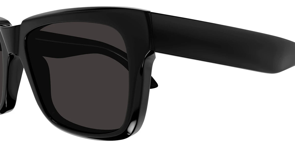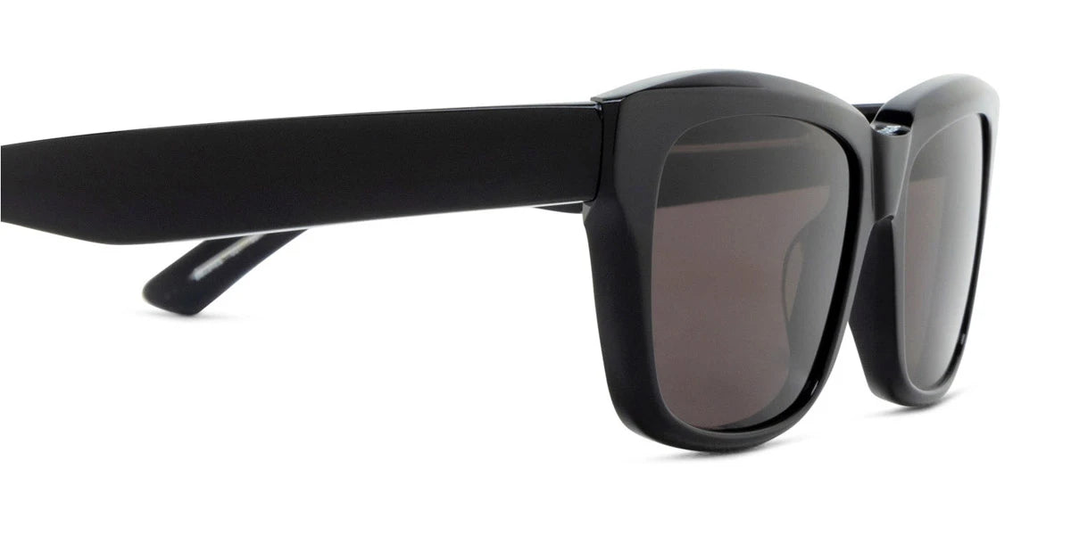Black (001) Sunglasses with Gray lenses (BB0346S 001 55) by Balenciaga™. Size: 55-17-145, Shape: Square, Material: Recycled Acetate.
