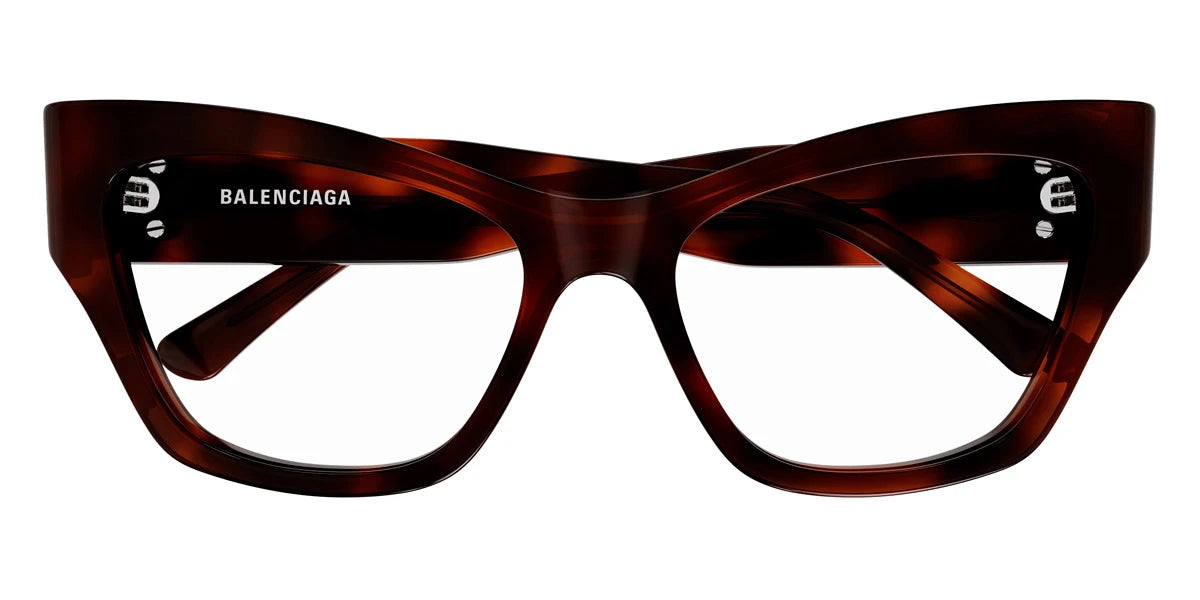 BB0362O Eyeglasses by Balenciaga™. The butterfly shape design feature a full rim recycled acetate frame. This model is available in two different color combinations and sizes. Balenciaga fashion house was founded in Spain in 1920 by Cristobal Balenciaga, in 1937 the first Parisian store of the Balenciaga brand opened its doors to visitors on avenue George V.The brand's clear influence on global fashion trends makes Balenciaga's clothing and accessories collections recognizable and popular all over the world. Sophistication, simplicity of form, branded cut and striving for perfection - this is what the fans of the brand appreciate.The brand's concept continues with sunglasses. Along with the invariably high quality of materials, today high technologies are involved in their manufacture. Some models are additionally decorated with brand inscriptions and laser engraving.