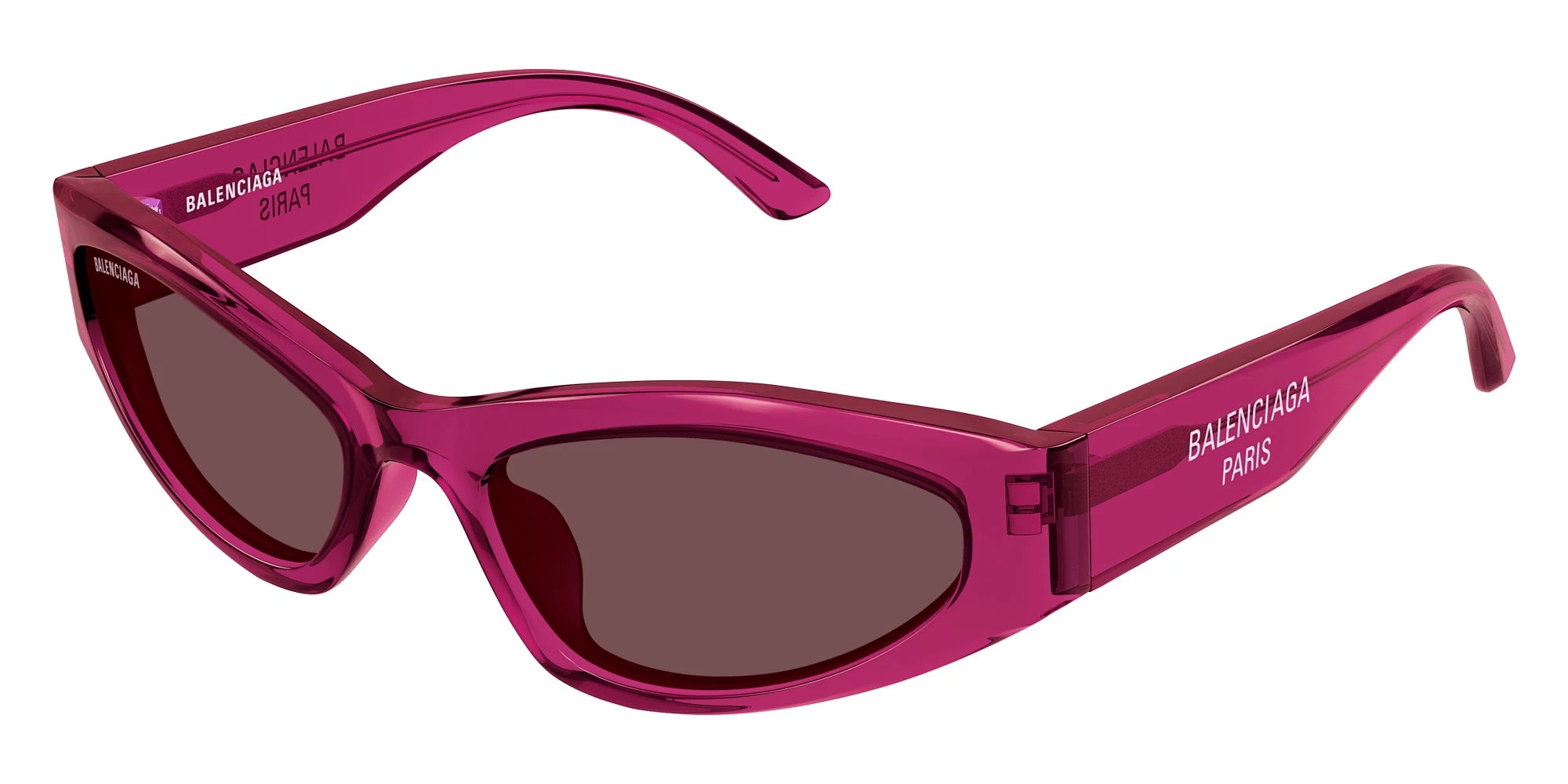 Burgundy (003) Sunglasses with Violet lenses (BB0387S 003 58) by Balenciaga™. Size: 58-19-140, Shape: Narrow, Material: Recycled Acetate.
