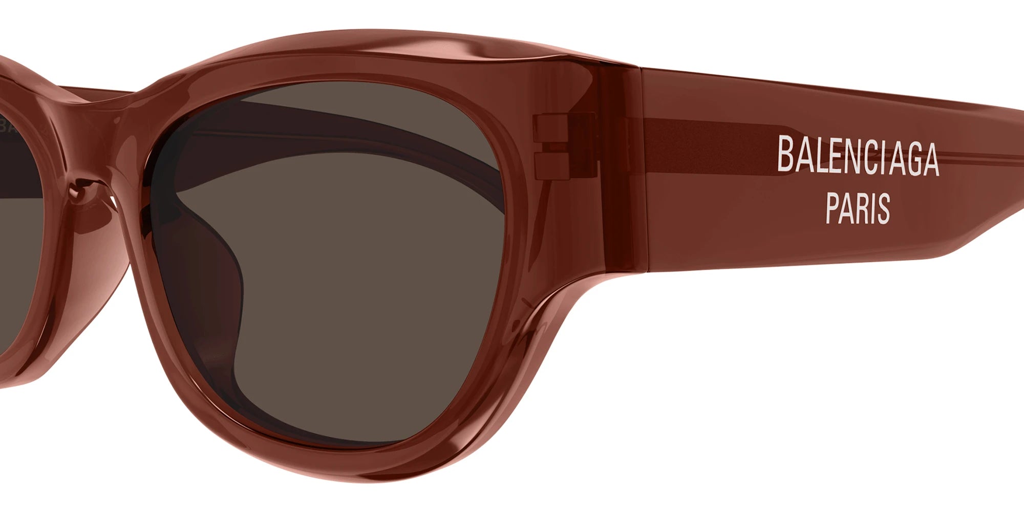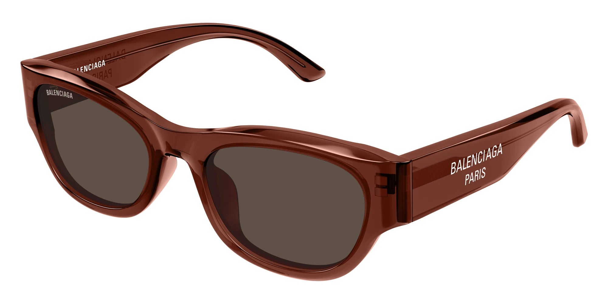 Brown (004) Sunglasses with Brown lenses (BB0389SK 004 55) by Balenciaga™. Size: 55-20-145, Shape: Rectangle, Material: Recycled Acetate.