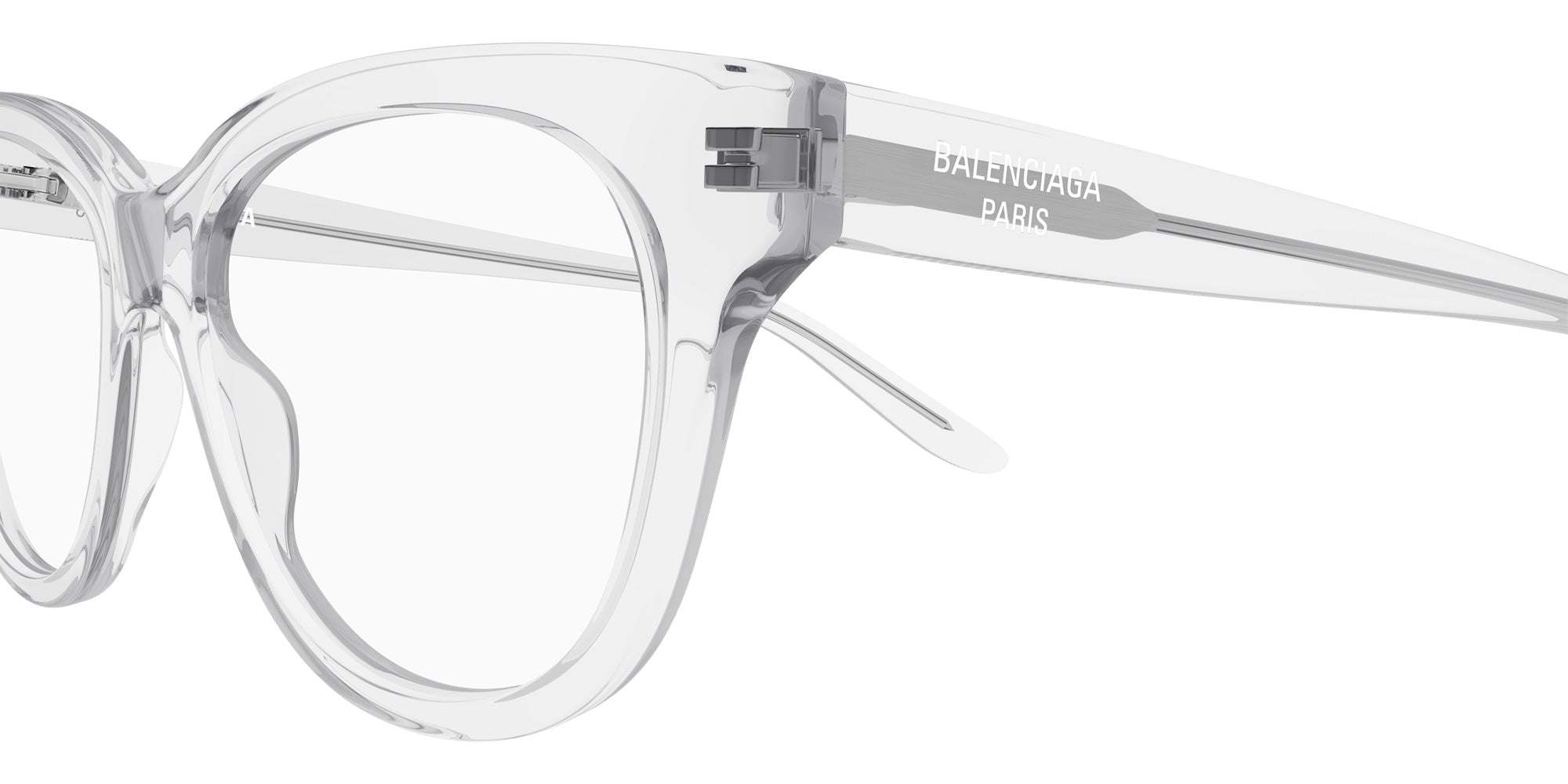 Ivory (007) Eyeglasses (BB0441O 007 53) by Balenciaga. Size: 53-16-145, Shape: Cat-Eye, Material: Recycled Acetate.