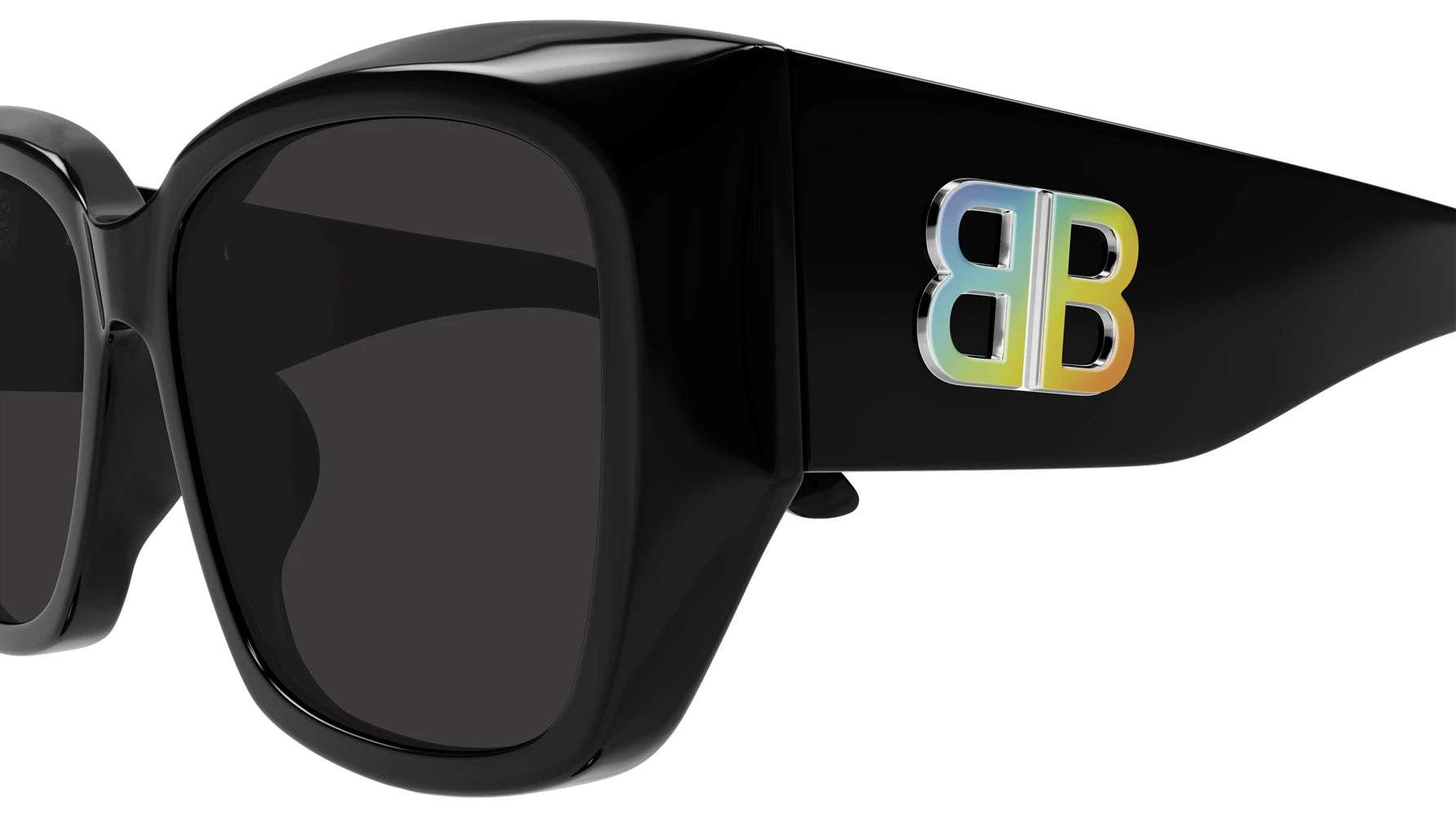 Black (002) Sunglasses with Gray lenses (BB0445SK 002 56) by Balenciaga™. Size: 56-16-145, Shape: Oversized, Material: Recycled Acetate.