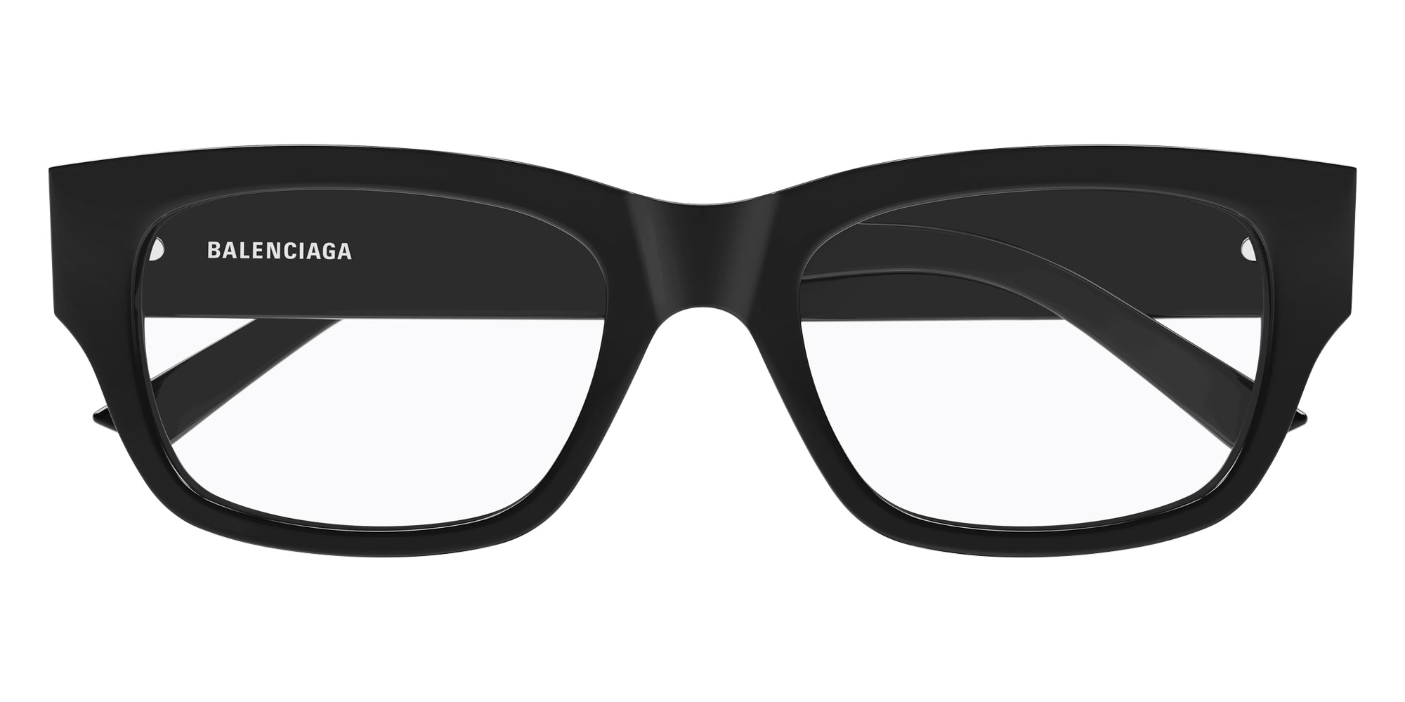 Black (001) Eyeglasses (BB0450O 001 54) by Balenciaga. Size: 54-19-145, Shape: Rectangle, Material: Recycled Acetate.
