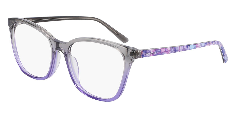 Gray Gradient (050) Eyeglasses (BB5206 050 53) by bebe. Size: 53-17-135, Shape: Rectangle, Material: Acetate.