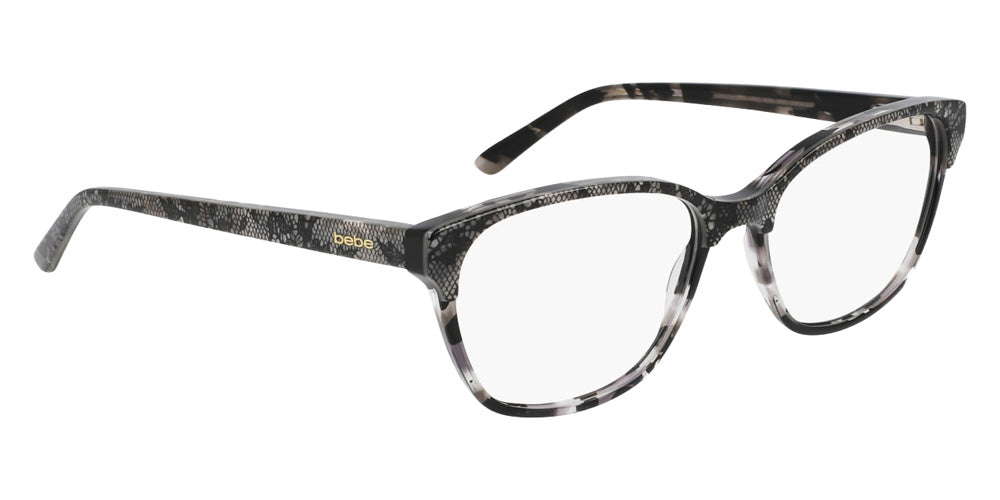 Jet Lace (001) Eyeglasses (BB5220 001 55) by bebe. Size: 55-16-140, Shape: Rectangle, Material: Acetate.