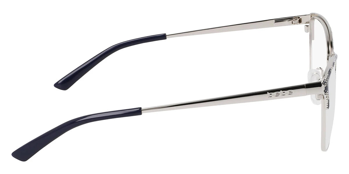 Navy Lace (410) Eyeglasses (BB5221 410 52) by bebe™. Size: 52-16-135, Shape: Cat-Eye, Material: Metal.
