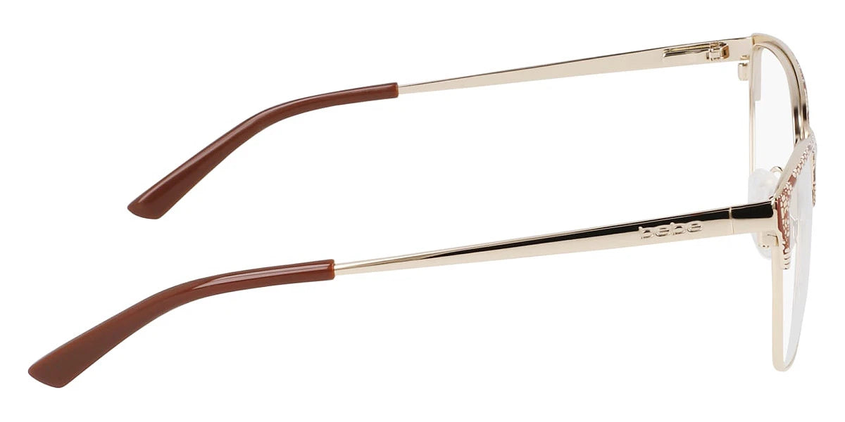 BB5221 Eyeglasses by bebe™. The cat-eye shape design feature a full rim metal frame. This model is available in three different color combinations and sizes. bebe is an American brand launched by Manny Mashouf in 1976 that became popular over fashion-forward ladies very fast. In 1971, Mashouf opened his first small store in San Francisco, and in the 90s, clothes of the famous company were chosen by many adorers. The goal of Manny was to create stylish and sexy women's apparel and accessories to express femininity and sensuality. The main features of this brand are excellent style, modernity, adequate creativity, top-rated quality, and individuality. The name ''bebe'' was inspired by the well-known phrase from Shakespeare's Hamlet, ''to be or not to be'' to emphasize the brand's essence of being.