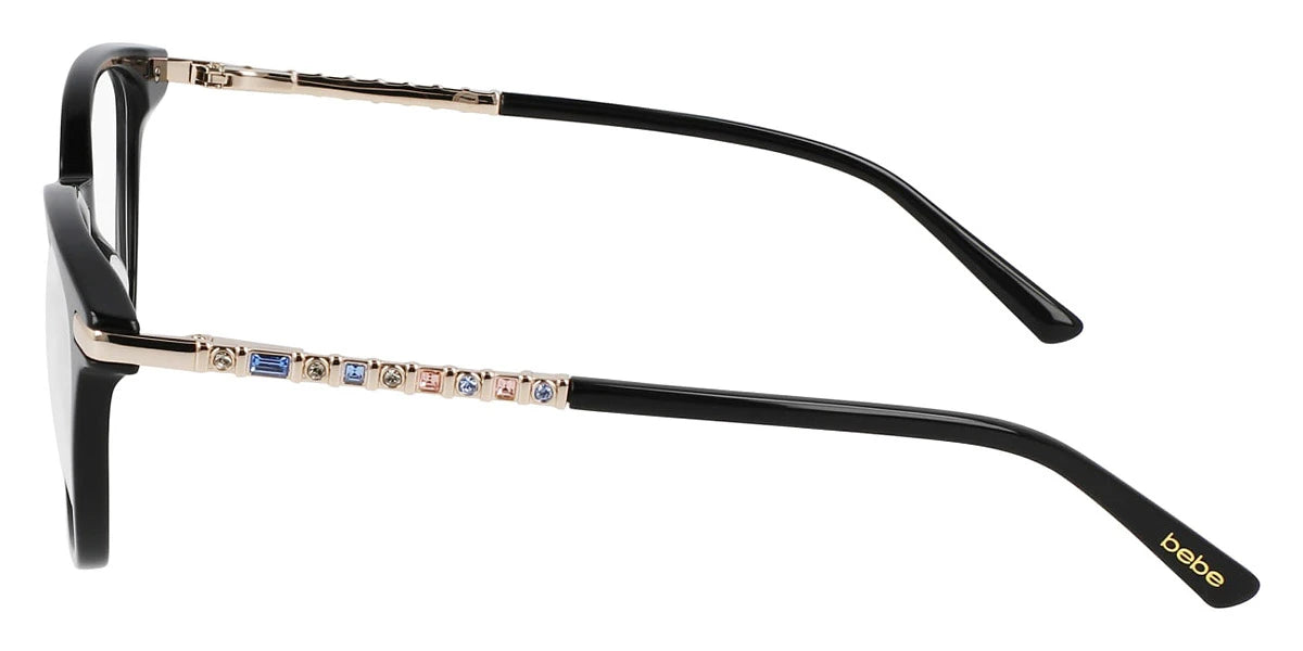 Jet (001) Eyeglasses (BB5223 001 52) by bebe™. Size: 52-16-135, Shape: Cat-Eye, Material: Acetate.