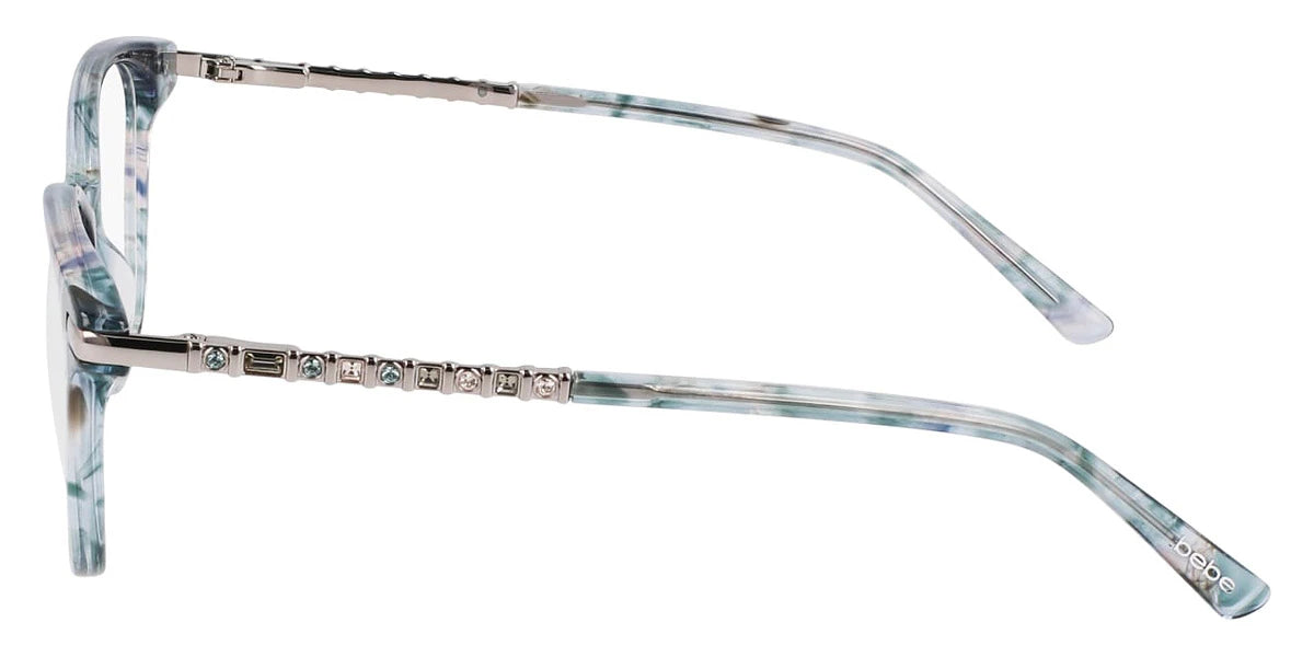 BB5223 Eyeglasses by bebe™. The cat-eye shape design feature a full rim acetate frame. This model is available in three different color combinations and sizes. bebe is an American brand launched by Manny Mashouf in 1976 that became popular over fashion-forward ladies very fast. In 1971, Mashouf opened his first small store in San Francisco, and in the 90s, clothes of the famous company were chosen by many adorers. The goal of Manny was to create stylish and sexy women's apparel and accessories to express femininity and sensuality. The main features of this brand are excellent style, modernity, adequate creativity, top-rated quality, and individuality. The name ''bebe'' was inspired by the well-known phrase from Shakespeare's Hamlet, ''to be or not to be'' to emphasize the brand's essence of being.