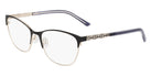 Jet (001) Eyeglasses (BB5240 001 53) by bebe™. Size: 53-16-140, Shape: Rectangle, Material: Metal.
