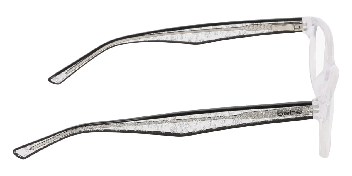 Jet (001) Eyeglasses (BB5242 001 52) by bebe™. Size: 52-16-140, Shape: Rectangle, Material: Acetate.