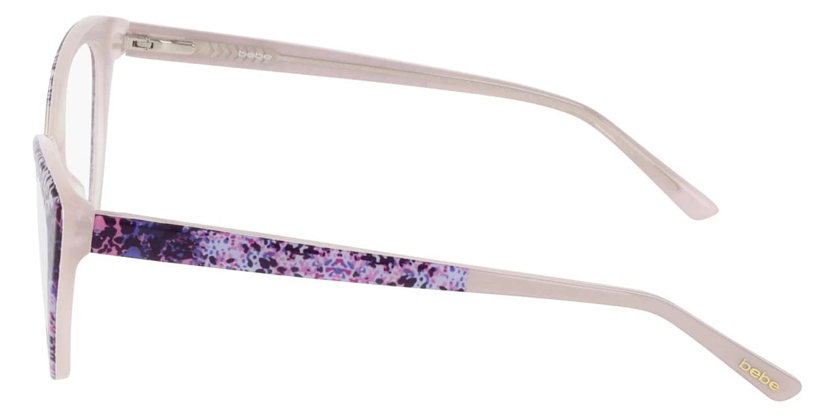BB5243 Eyeglasses by bebe™. The cat-eye shape design feature a full rim acetate frame. This model is available in three different color combinations and sizes. bebe is an American brand launched by Manny Mashouf in 1976 that became popular over fashion-forward ladies very fast. In 1971, Mashouf opened his first small store in San Francisco, and in the 90s, clothes of the famous company were chosen by many adorers. The goal of Manny was to create stylish and sexy women's apparel and accessories to express femininity and sensuality. The main features of this brand are excellent style, modernity, adequate creativity, top-rated quality, and individuality. The name ''bebe'' was inspired by the well-known phrase from Shakespeare's Hamlet, ''to be or not to be'' to emphasize the brand's essence of being.