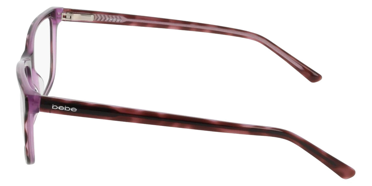 Jet Pink (001) Eyeglasses (BB5247 001 53) by bebe™. Size: 53-17-135, Shape: Rectangle, Material: Acetate.