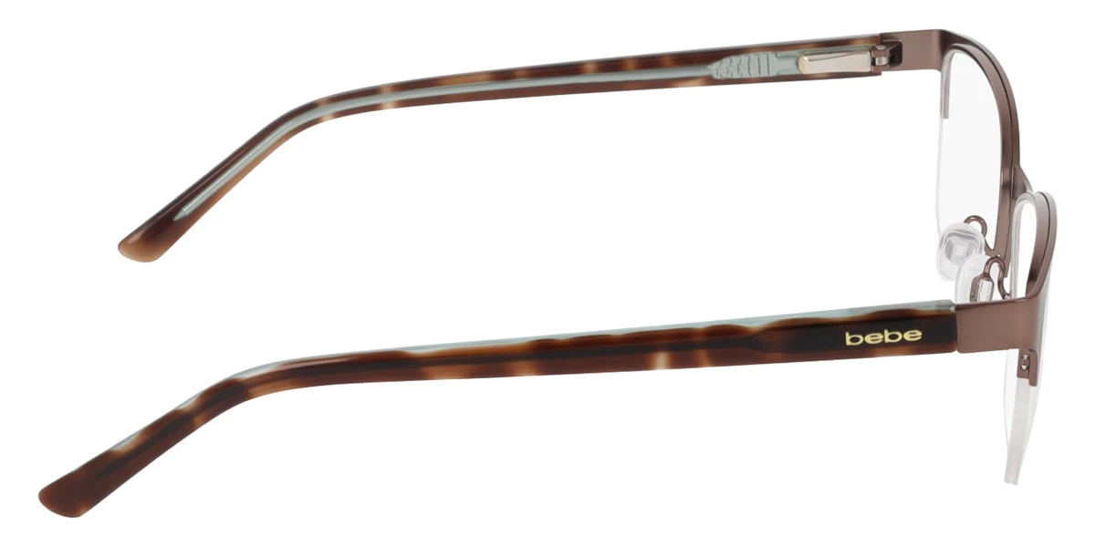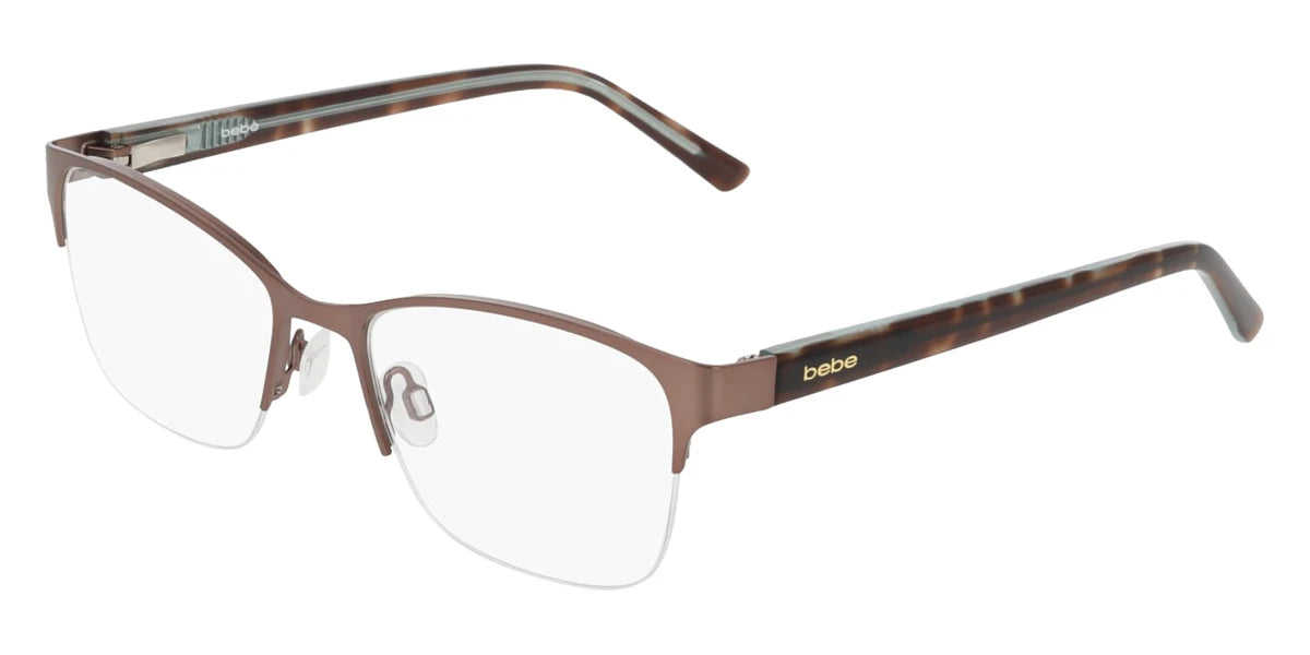 BB5248 Eyeglasses by bebe™. The rectangle shape design feature a semi rimless metal frame. This model is available in three different color combinations and sizes. bebe is an American brand launched by Manny Mashouf in 1976 that became popular over fashion-forward ladies very fast. In 1971, Mashouf opened his first small store in San Francisco, and in the 90s, clothes of the famous company were chosen by many adorers. The goal of Manny was to create stylish and sexy women's apparel and accessories to express femininity and sensuality. The main features of this brand are excellent style, modernity, adequate creativity, top-rated quality, and individuality. The name ''bebe'' was inspired by the well-known phrase from Shakespeare's Hamlet, ''to be or not to be'' to emphasize the brand's essence of being.