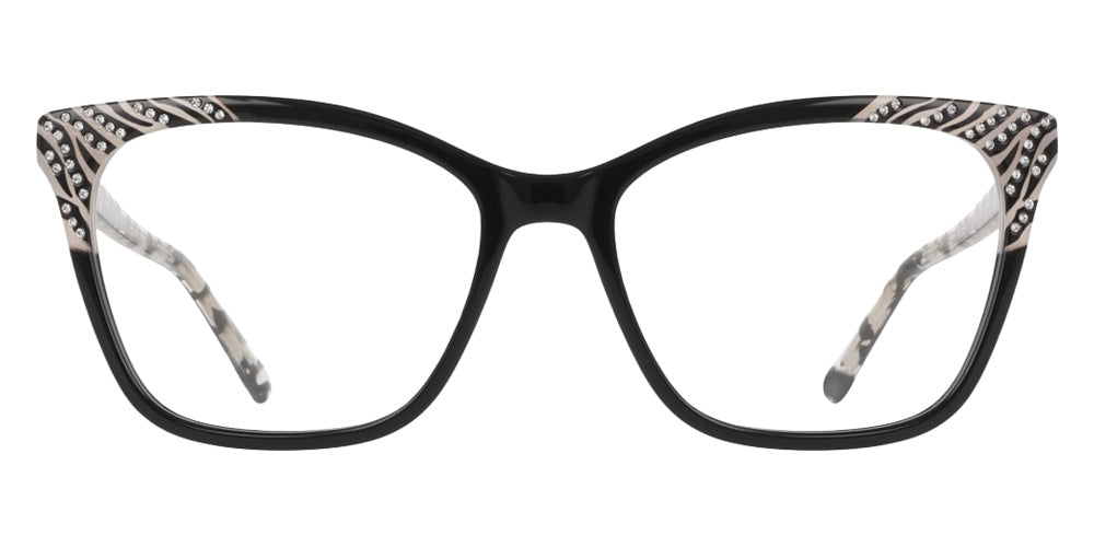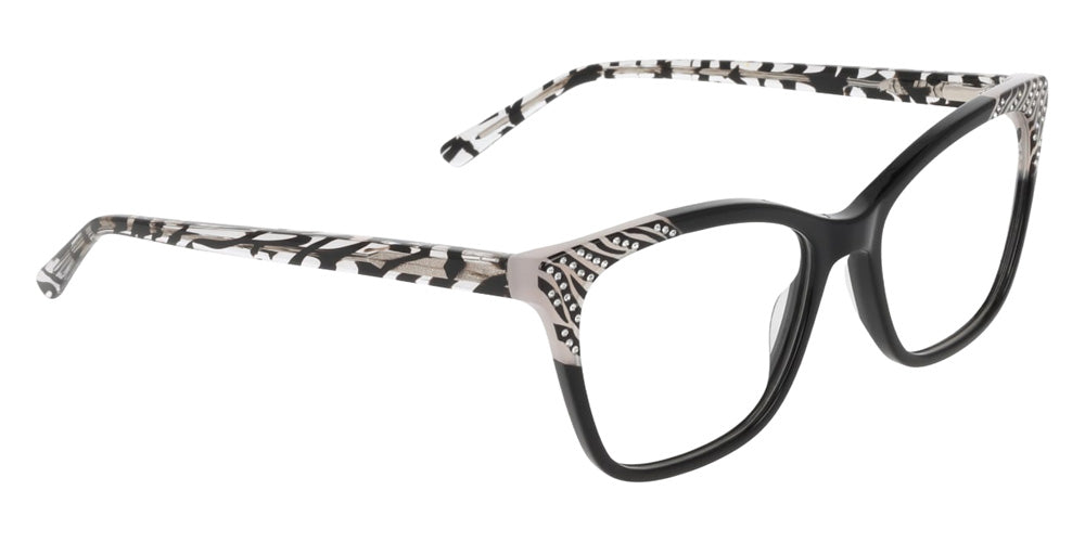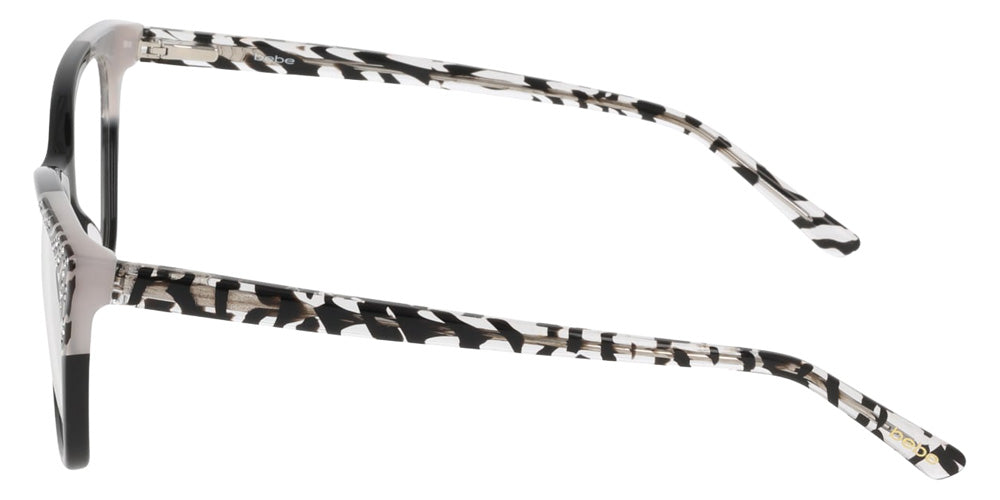 Jet (001) Eyeglasses (BB5249 001 52) by bebe. Size: 52-16-140, Shape: Rectangle, Material: Acetate.