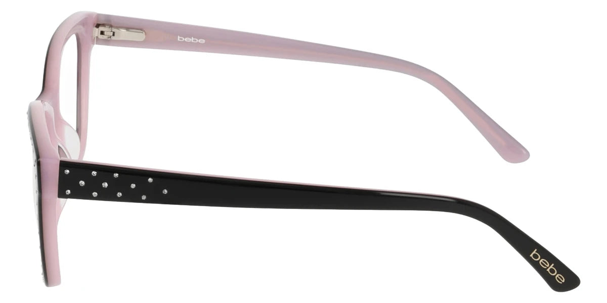 Jet (001) Eyeglasses (BB5252 001 53) by bebe™. Size: 53-18-140, Shape: Rectangle, Material: Acetate.