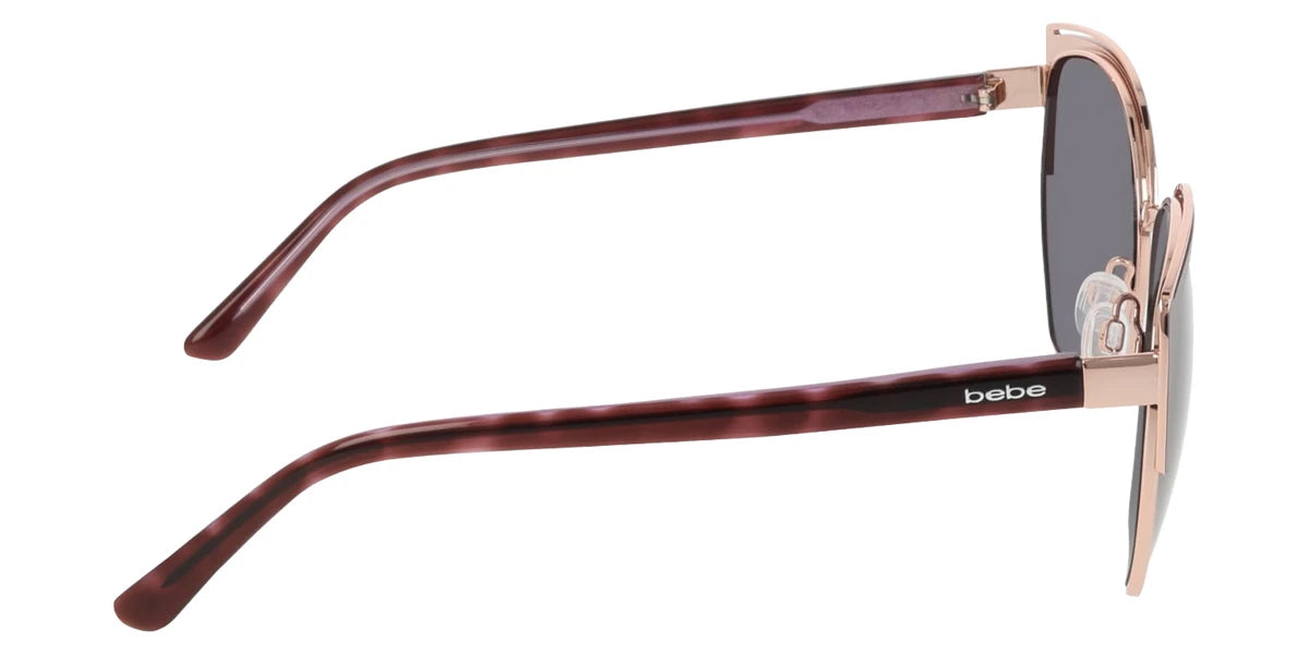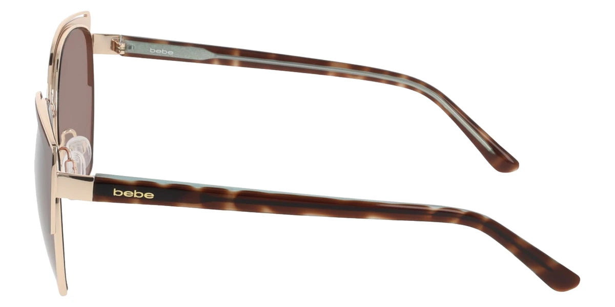 BB7273 Sunglasses by bebe™. The rectangle shape design feature a full rim metal frame. This model is available in three different color combinations and sizes. bebe is an American brand launched by Manny Mashouf in 1976 that became popular over fashion-forward ladies very fast. In 1971, Mashouf opened his first small store in San Francisco, and in the 90s, clothes of the famous company were chosen by many adorers. The goal of Manny was to create stylish and sexy women's apparel and accessories to express femininity and sensuality. The main features of this brand are excellent style, modernity, adequate creativity, top-rated quality, and individuality. The name ''bebe'' was inspired by the well-known phrase from Shakespeare's Hamlet, ''to be or not to be'' to emphasize the brand's essence of being.