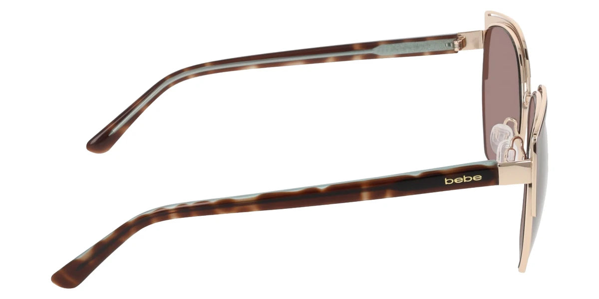 Jet Gold (001) Sunglasses (BB7273 001 57) by bebe™. Size: 57-18-140, Shape: Rectangle, Material: Metal.