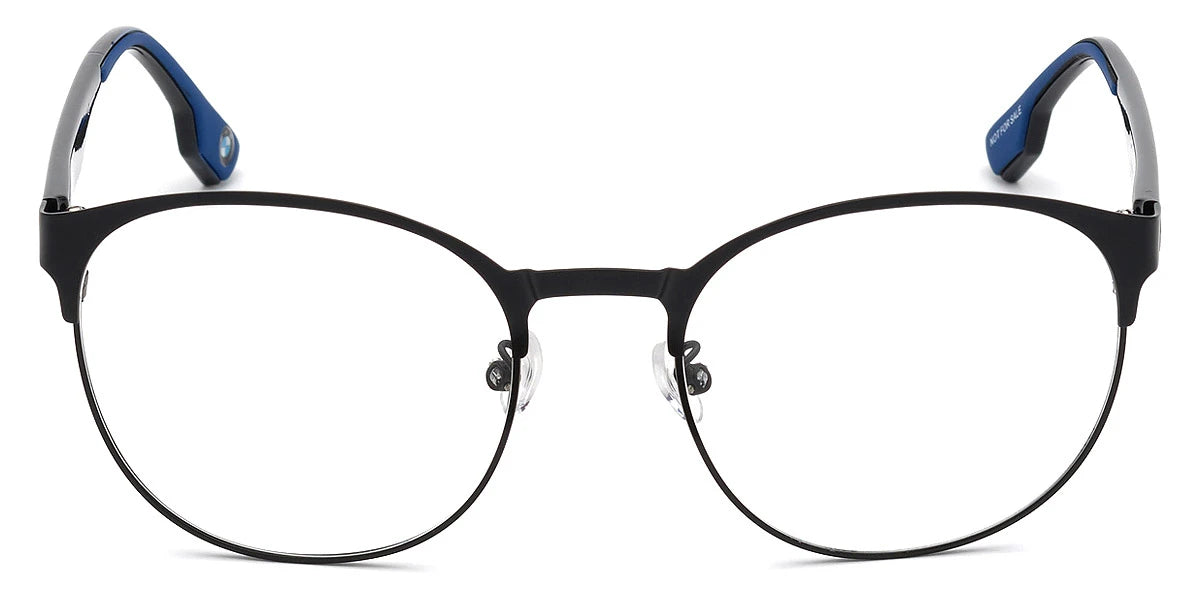 Matte Black (002) Eyeglasses (BS5001 002 55) by BMW™. Size: 55-21-145, Shape: Round, Material: Metal.