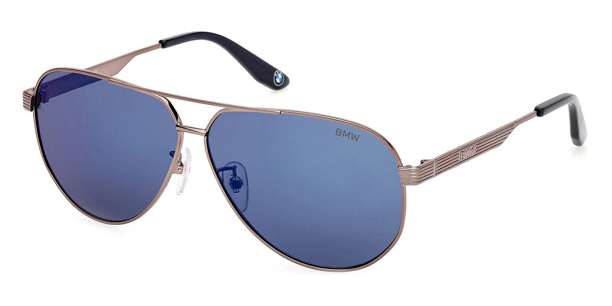 Shiny Dark Bronze (38V) Sunglasses with Blue Mirrored lenses (BW0061-H 38V 60) by BMW™. Size: 60-9-140, Shape: Aviator, Material: Metal.