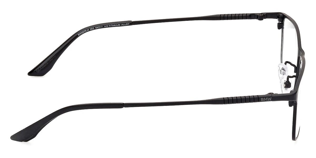 Matte Black (002) Eyeglasses (BW5070-H 002 56) by BMW™. Size: 56-17-145, Shape: Rectangle, Material: Titanium.
