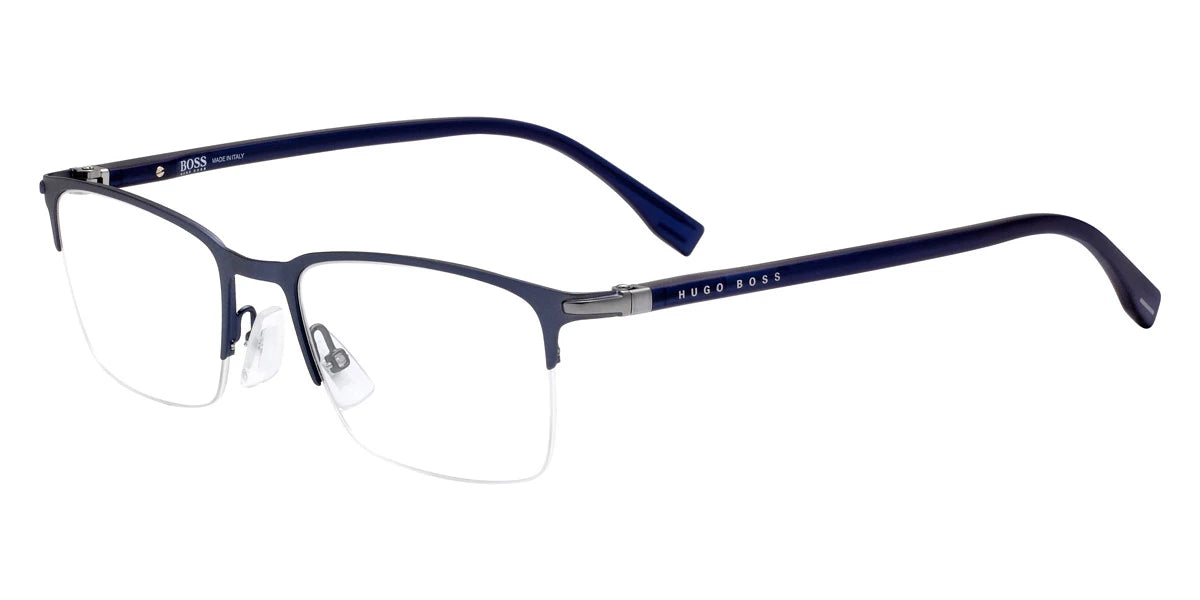 Matte Blue (0FLL) Eyeglasses (BSH 1007/it 0FLL 52) by Boss™. Size: 52-19-145, Shape: Rectangle, Material: Metal.