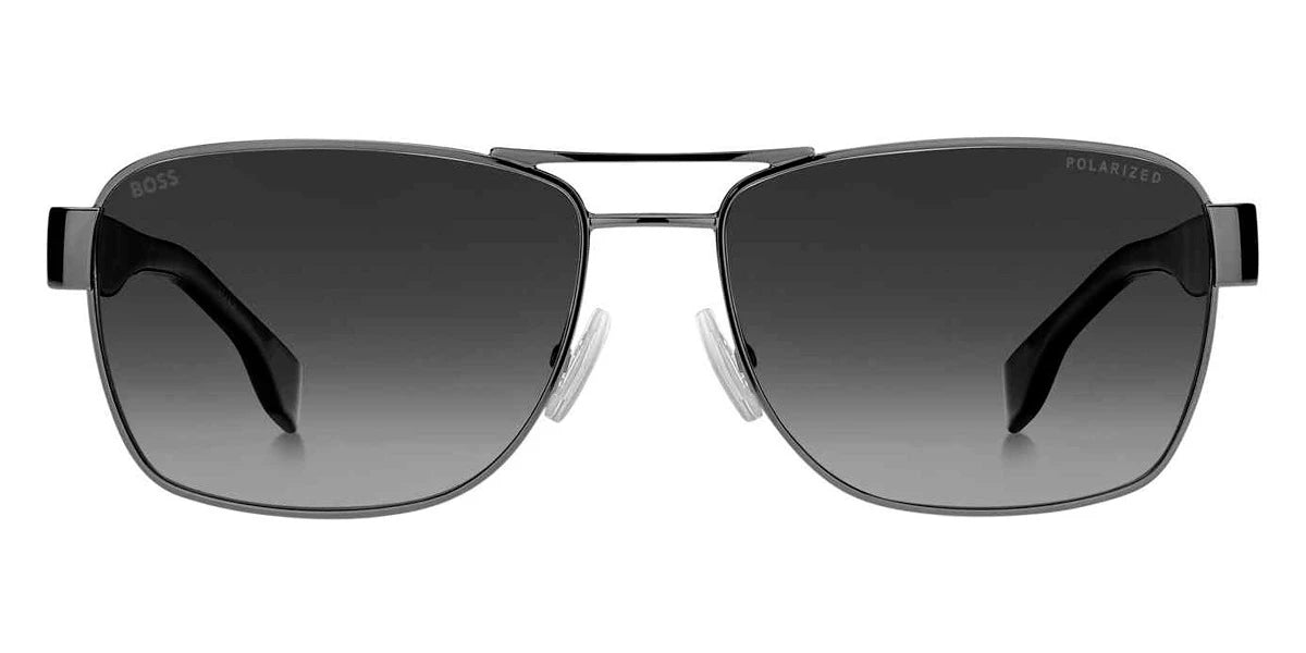 Black (0807M9) Sunglasses with Gray Polarized lenses (1441/S 0807M9 60) by Boss™. Size: 60-16-150, Shape: Rectangle, Material: Acetate and Stainless Steel.