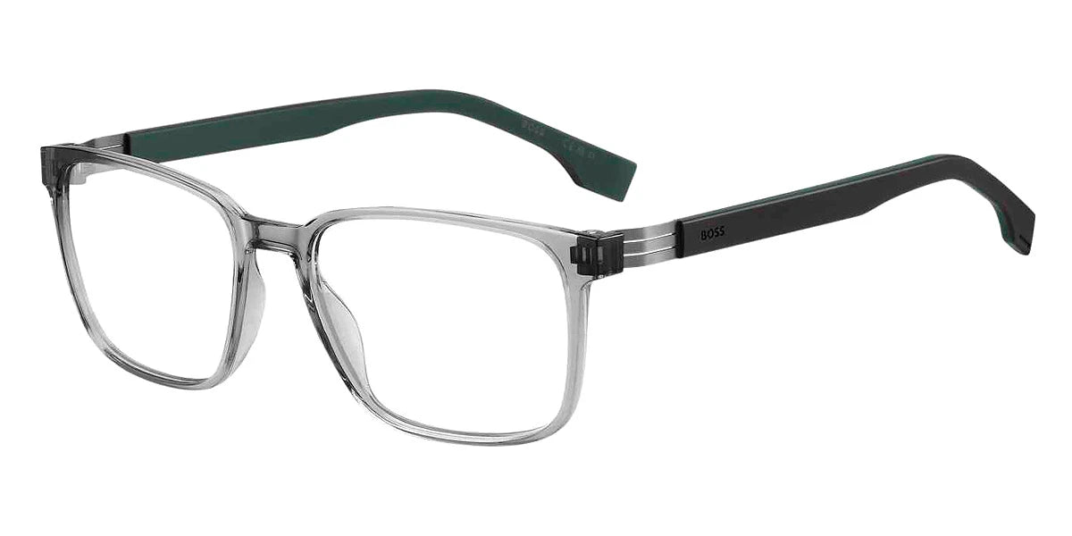 Gray Green (03U5) Eyeglasses (1578 03U5 55) by Boss™. Size: 55-17-150, Shape: Rectangle, Material: Polyamide Inj-Gril. and Stainless Steel.