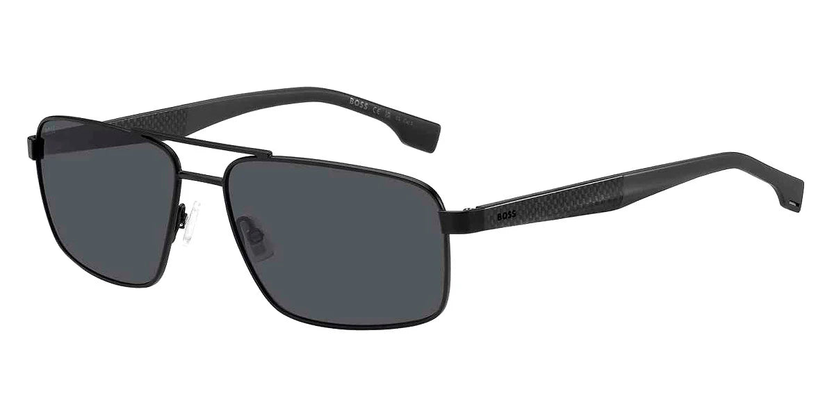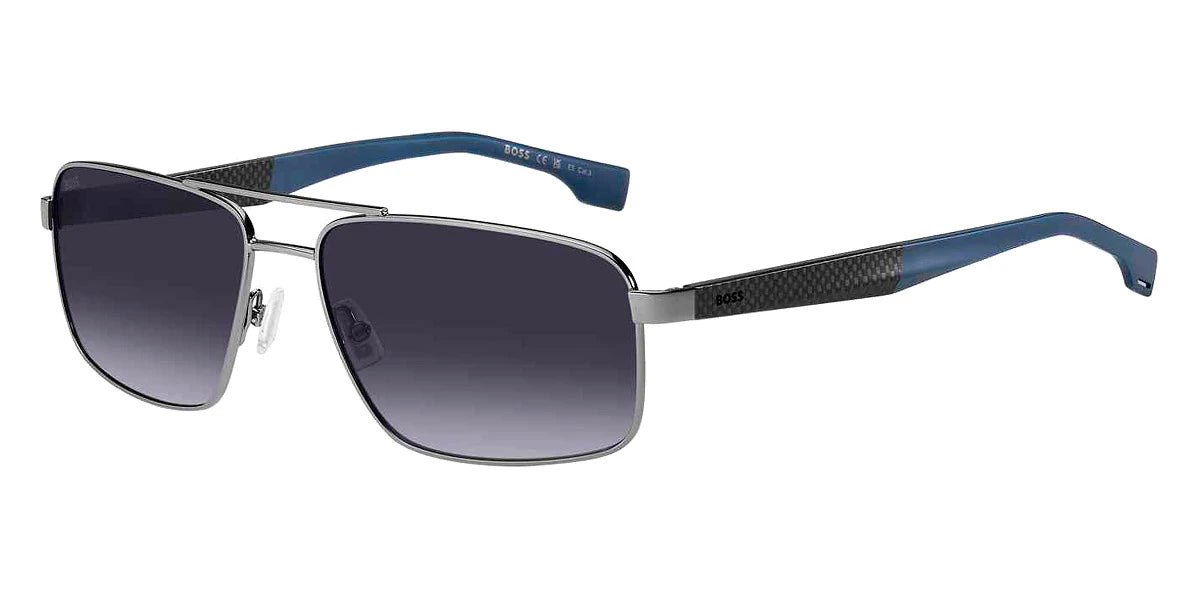 Ruthenium Blue (0V841I) Sunglasses with Gray Shaded AR lenses (1580/S 0V841I 59) by Boss™. Size: 59-16-145, Shape: Rectangle, Material: Stainless Steel and Carbon Fiber.