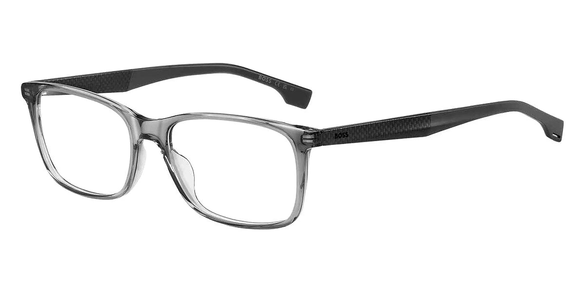 Gray (0KB7) Eyeglasses (1581 0KB7 57) by Boss™. Size: 57-17-145, Shape: Rectangle, Material: Acetate and Carbon Fiber.